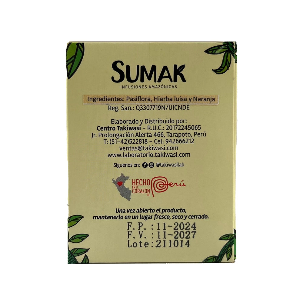 Hojas molidas de pasiflora, hierba luisa y naranja, provenientes de comunidades nativas Kichwas Lamistas de la provincia de El Dorado, región San Marín, Perú.